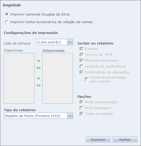 Imprimir somente < funcionário selecionado na tela de Cálculos >: Gera relatório somente do funcionário selecionado na tela de Cálculos;